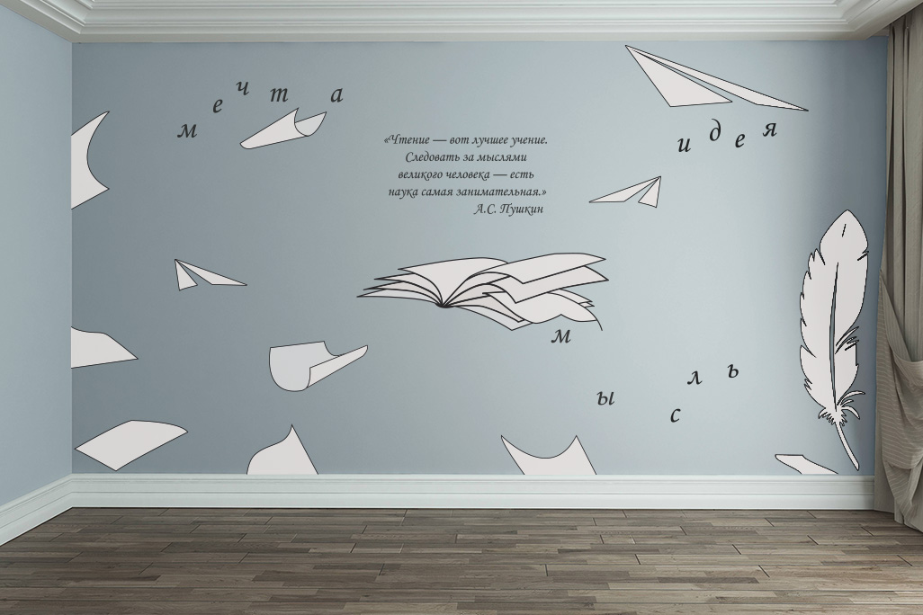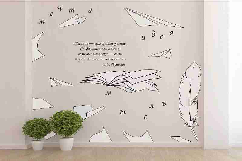 Набор "Книга" (с цитатой Пушкина) печать с ламинациейНаклейка "Книга" (с цитатой А.С. Пушкина) создана для декора школьного коридора, класса литературы, стены в библиотеке. На какие поверхности клеитсяобои